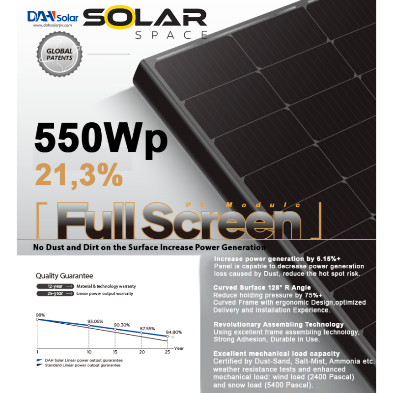 DAH Solar 550Wp Full Black bezrámové