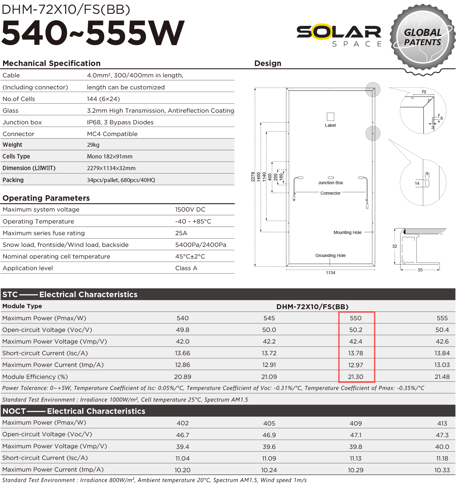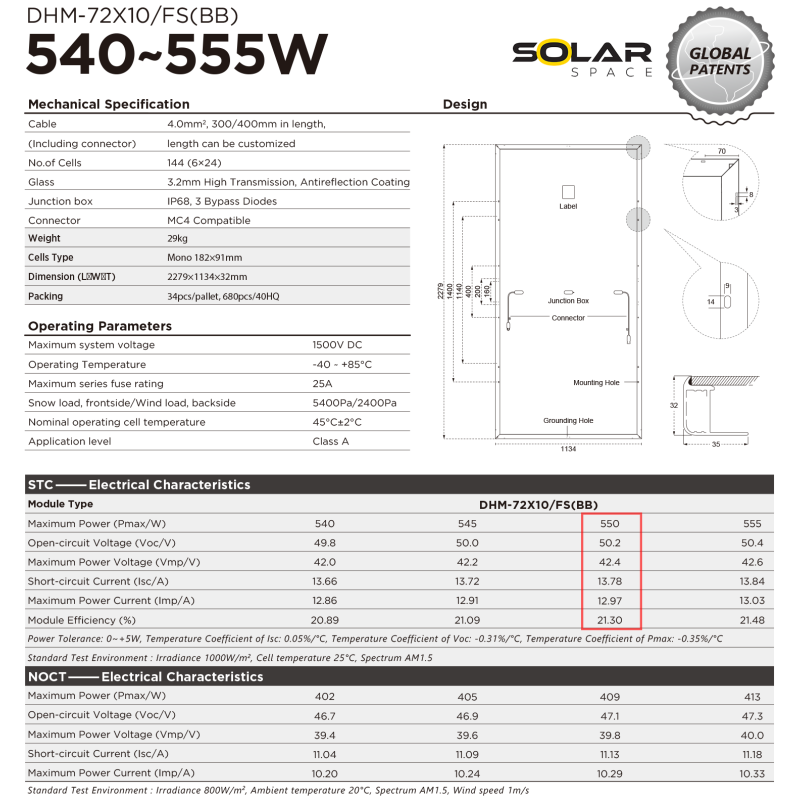 Datasheet k panelom DAH Solar DHM-72X10 FS(BB)-550W