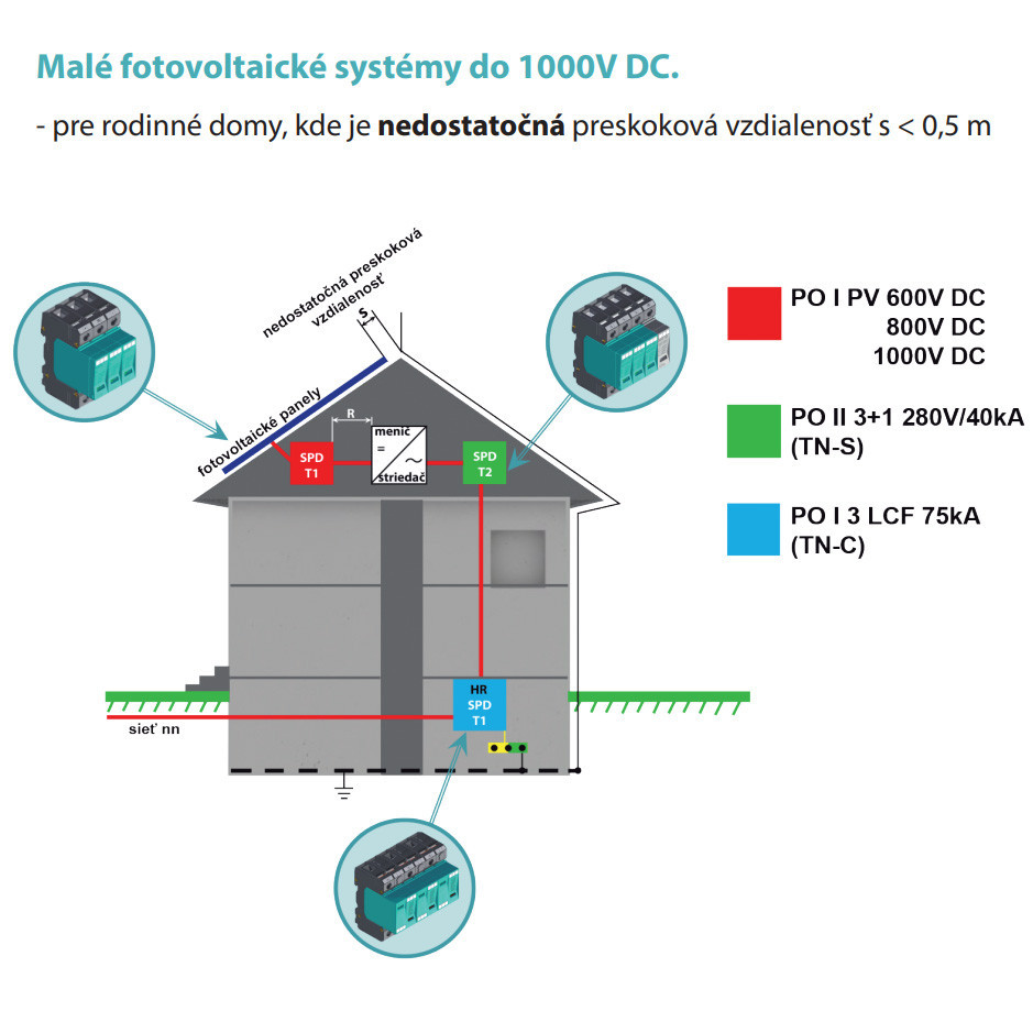 S dvoma pólmi a pracovným napätím až 1000 V DC, tento prepäťový ochranný prvok je ideálny pre všetky štandardné fotovoltické aplikácie, vrátane rezidenčných systémov, menších komerčných inštalácií aj off-grid riešení. Prúdová kapacita a reakčná rýchlosť zaručujú spoľahlivú ochranu aj v náročnejších podmienkach.
