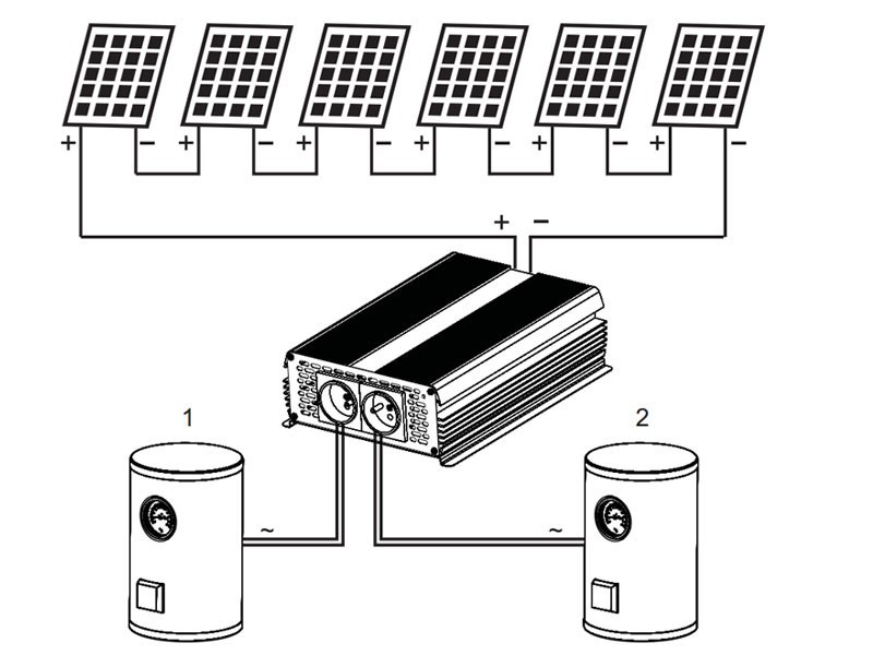Systém fotovoltaického ohrevu vody vyžaduje len pripojenie príslušného počtu klasických fotovoltaických panelov (rádovo 4-9ks podľa typu a výkonu) s prevádzkovým napätím okolo 35-45V, alebo zodpovedajúci počet iných panelov a spotrebič elektrickej energie napr. bojler. Jednosmerný prúd generovaný panelmi, ktorý nie je možné použiť priamo na napájanie vykurovacích zariadení sa v meniči transformuje na striedavý prúd, ktorým je možné napájať bežné AC spotrebiče.